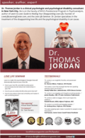 Dr. Thomas Jordan is a clinical psychologist, psychoanalyst, and psychological disability consultant in New York City. He is on the faculty of New York University's Postdoctoral Program in Psychotherapy and Psychoanalysis, author of Learn to Love: Guide to Healing Your Disappointing Love Life, founder of LoveLifeLearningCenter.com, and creator of the Love Life Seminar.